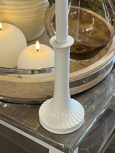 Valkoinen Alice sarjan kynttilänjalka.